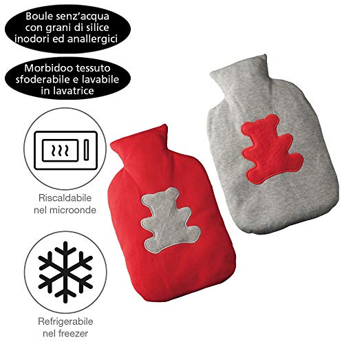 Macom Enjoy & Relax 922 Boule No Water in Morbido Tessuto, Riscaldabile nel Microonde e Refrigerabile nel Freezer, Rosso/Grigio, 1000 unità