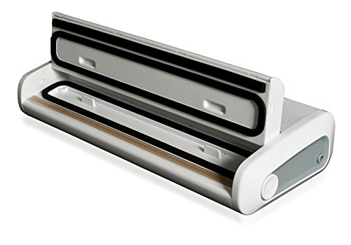 Macchina sottovuoto automatica compatta con finiture in acciaio, colore silver/bianco/grigio