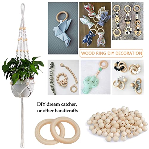 【Kit Macrame Corda】 Contiene 3 mm*100m di cavo macramè nero, 3PCS bastoncini di legno da 15cm, 3PCS bastoncini di legno da 20cm, 3PCS anelli di legno da diametro 67mm, 3PCS anelli di legno da diametro 54mm (spessore di 9mm). 100PCS di perline di diametro di 12mm di legno in colori di legno naturale.