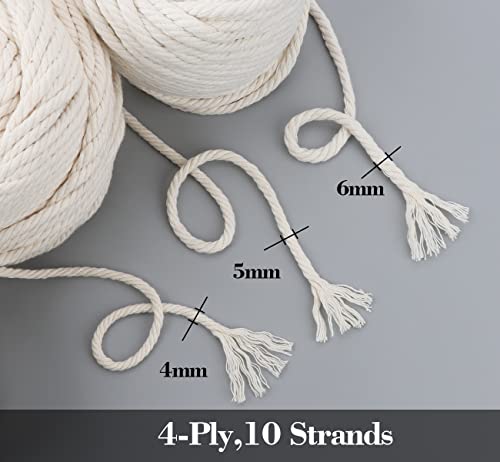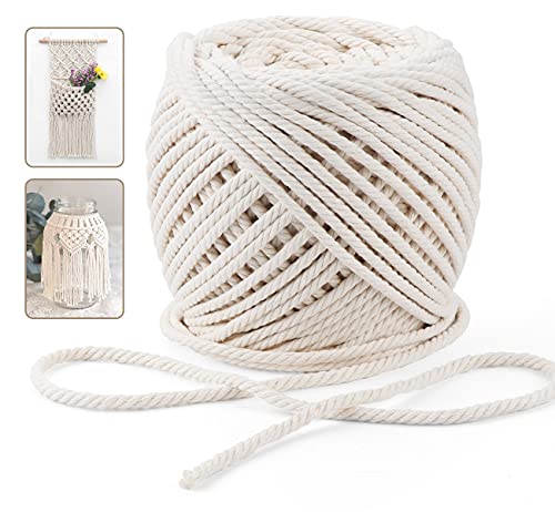 Macrame Corda 5mm x 100m, Filo Macrame Spago Natural Cotone 4 Strand Twisted, Filato Macrame Naturale Beige, Corda Cotone per Fai da Te Cestini All'uncinetto, Macramè Arazzo, Progetti Decorativi