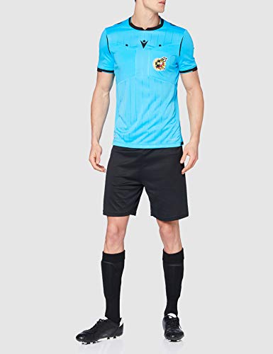 Macron Rfef 20 Match Day Man Shirt Referee SS Nsky/Blk SR, Maglia Arbitro Neon Reale Federazione Spagnola di Calcio Uomo, Azzurro Fluo, M