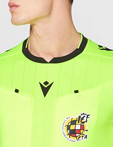 Macron Rfef 20 Match Day Man Shirt Referee SS Nyel/Blk SR, Maglia Arbitro Neon Reale Federazione Spagnola di Calcio Uomo, Giallo Fluo, L