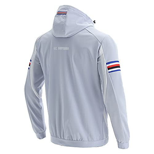 Giacca anthem UC Sampdoria 2021/22. Il capo è dotato di una comoda zip, di un pratico cappuccio e di tasche laterali, anch'esse richidubili mediante zip invisibili. Completa l'insieme la patch con lo scudetto lato cuore e, sul retro, appena sotto al cappuccio, la scritta 'UC Sampdoria' in bianco. L'articolo è perfetto per sostenere la tua squadra anche durante le fredde giornate invernali.