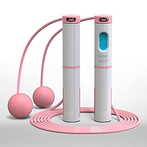 Macwick Corda Per Saltare Professionale Digitale Conta Calorie, Cavo Regolabile 3m con Manici in Gomma Antiscivolo, Allenamento in Casa Palestra Crossfit Boxe Fitness Uomo Donna Jump (Bianca e Rosa)