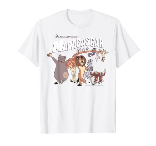 Madagascar Cartoon Group Shot Movie Logo Maglietta