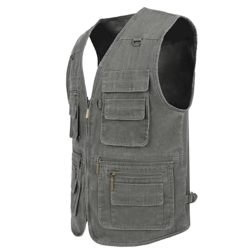 LUSI MADAM Uomo Stone Washed Denim Multi-intascato Gilet Pesca EU 4XL/Asia 7XL Verde Scuro