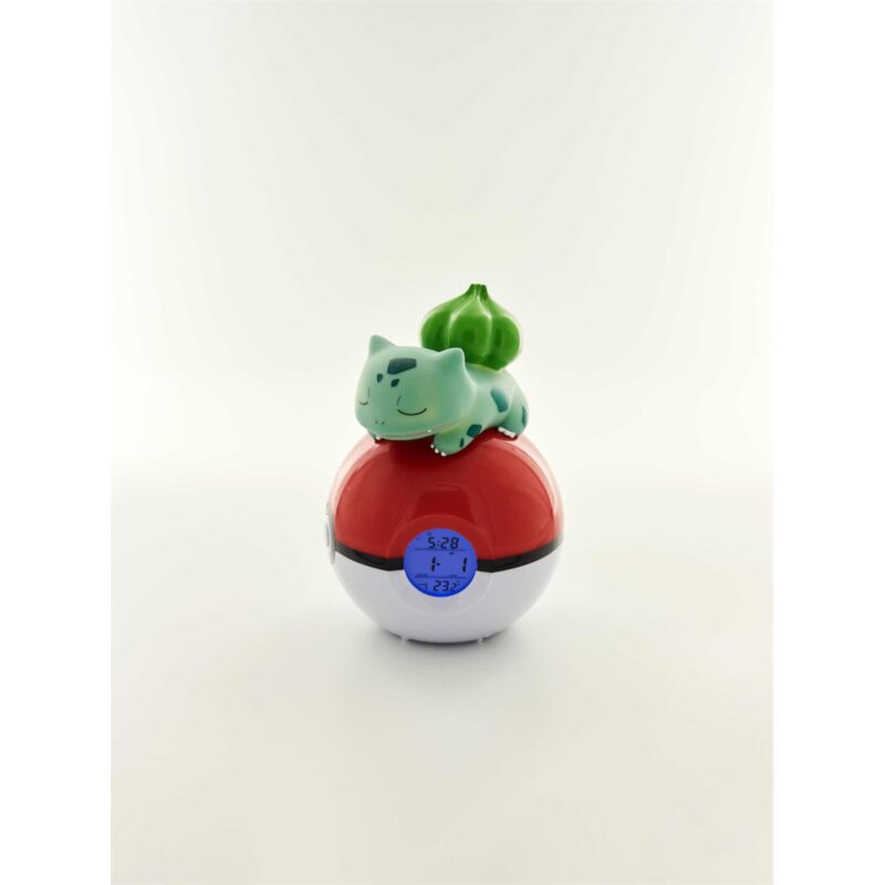 Teknofun presenta questa sveglia con lampada bulbasaur che dorme in una pokéball - personaggio del videogioco pokémon. è una sveglia digitale con lampada a led - che indica la data - l'ora e la temperatura ambiente - con radio fm inclusa. richiede 3 batterie aaa (non incluse).