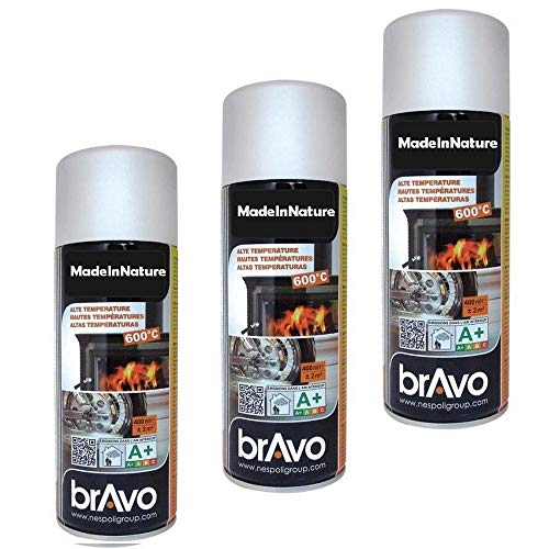 MadeInNature - Set di 3 bombolette di vernice spray ad alte temperature o radiatori, per interni ed esterni, 400 ml, 3 alte temperature in alluminio