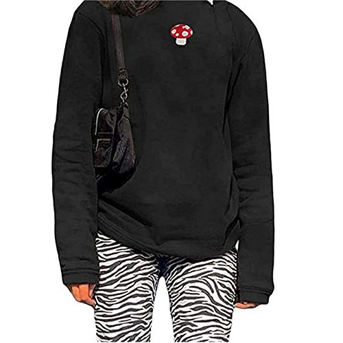 Design: manica lunga, girocollo, ricamo a funghi, pullover oversize y2k, top a funghi ragazza adolescente, estetica y2k, felpe e-girl anni '90 streetwear, pregevole fattura, ti fanno apparire alla moda e bello.