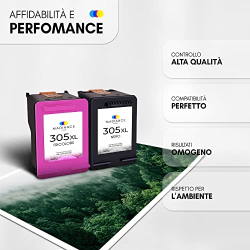 MADIANCE 305 XL 2 Pack Cartucce d'inchiostro rigenerate per HP 305 Cartuccia d'inchiostro HP305 305XL HP 305 XL Multipack nero e colore per HP Envy 6000 serie HP Deskjet 4130e 2720e 4120e 2710 2700