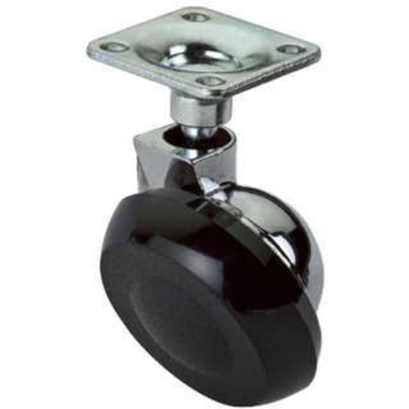 56130 - RUOTA PIROETTANTE IN NYLON CON PIASTRA corpo in zama. ruota in nylon, adatta per tutti i pavimenti da interno, tranne il parquet, ideale per carrellini e mobiletti Diametro: 42mm misura piastra: 28x282mm Portata: 30kg