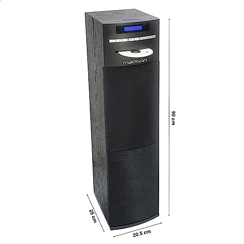 Madison - CENTER250-PLUS - Torre multimediale amplificata da 200W con lettore CD, DAB+, Bluetooth e USB - Legno nero