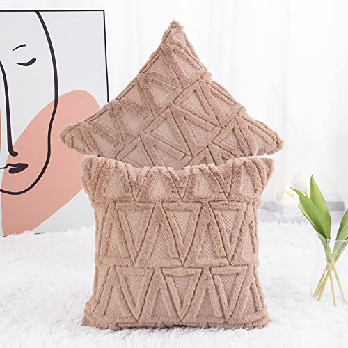 Madizz 2 Pezzi Federe in Lana Corta Velluto Copricuscini Morbido Decorativo Fodere per Cuscino Lusso Stile per Divano Camera da Letto Marrone Quadrate 60x60 cm