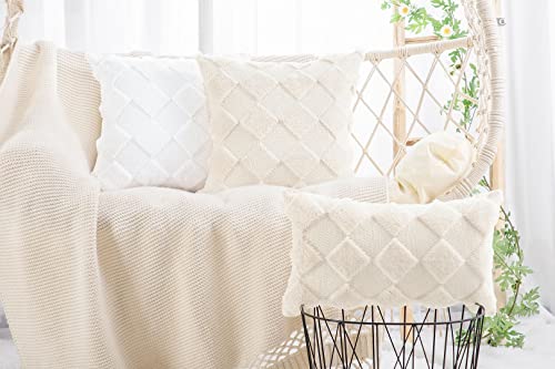 Madizz 2 Pezzi Federe in Lana Corta Velluto Copricuscini Morbido Decorativo Fodere per Cuscino Lusso Stile per Divano Camera da Letto Beige Quadrate 45x45 cm