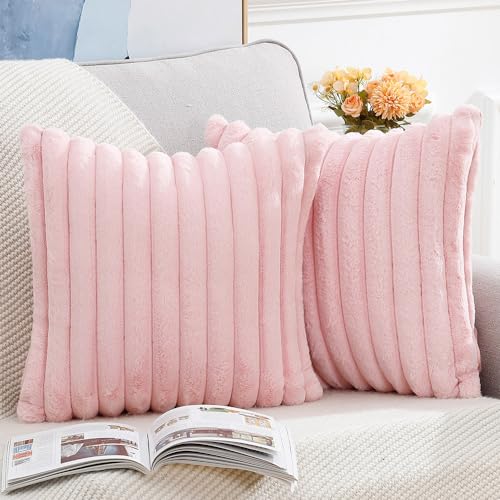 Madizz 2 Pezzi Federe in Lana Corta Velluto Copricuscini Morbido Decorativo Fodere per Cuscino Lusso Stile per Divano Camera da Letto Rosa 40 x 40 cm