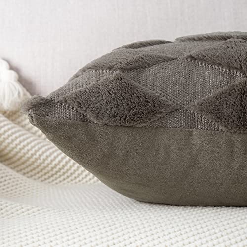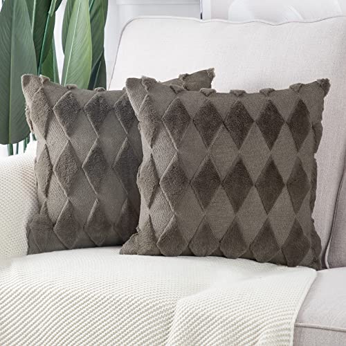 Madizz 2 Pezzi Federe in Lana Corta Velluto Copricuscini Morbido Decorativo Fodere per Cuscino Lusso Stile per Divano Camera da Letto Marrone grigiastro Quadrate 40x40 cm