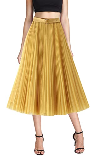 Maeau - Gonna da Donna in Velo Plissettata con Cintura Grande Vita Plissettata Mi-lunga Gonna in Tulle Elegante Gonna Vita Alta A Line per Party Lavoro Vacanze - Giallo