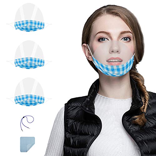 Maeau 3 pcs Visiera Plastica Adulti +1 Corda anti-perdita +1 Panno per la pulizia Visiera Trasparente (altezza:10cm, G-04)