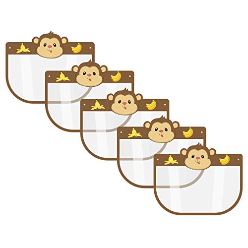 Maeau, visiere in plastica trasparente, 5 pezzi, per bambine e bambini, in plastica, con animali scimmia Taglia Unica