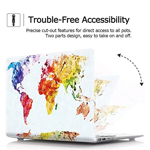 Maeco Macbook Air 13 Inch Case, Smooth Matte 2 in 1 Plastic Hard Shell Frosted Protective Case,High-tech Map Series for Air 13.3 A1369 and A1466, Watercolor