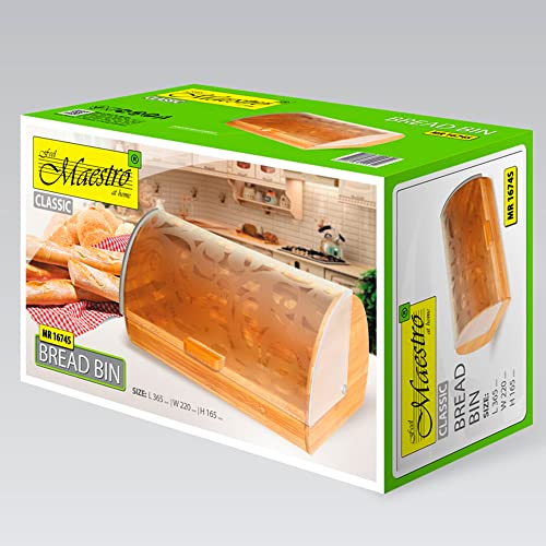 Maestro MR-1674S Portapane per la Conservazione, Coperchio Scorrevole, Apertura Frontale, Contenitore per Pane e Pasticceria Viennese, Design Elegante, Acrilico, bambù, Legno/Acciaio, 37 x 22 x 17 cm