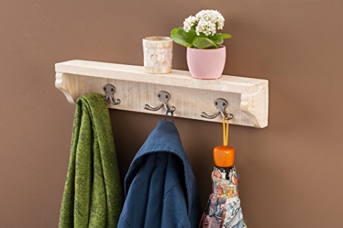 Maestro Vintage della barra con ganci, 455 X 90 mm ✓ legno di mango ✓ 3 Ganci Doppi ✓ stile vintage ✓ Decapato | appendiabiti, appendiabiti, appendiabiti da parete | parete | Gancio Appendiabiti Gancio Del Tovagliolo | | Gancio universale | 261867