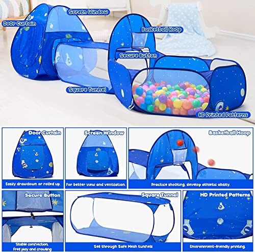 MAETOT 3 in 1 Pop up Tunnel da gioco per bambini, Tenda e Tunnel Bambini piscina di palline buca da basket Tenda Pieghevole per Interni ed Esterni per Giochi per Giochi da Campeggio