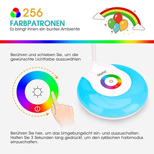 Mafiti - Lampada da scrivania per bambini, lampada da tavolo a LED, 16 LED, dimmerabile, con controllo touch, 3 livelli di luminosità e luce a colori RGB 256, per lettura, studio, lavoro [classe energetica A]