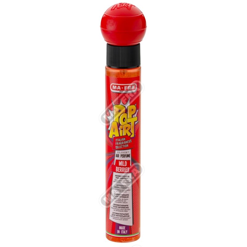 Pop Airt è la nuova linea di profumi spray Mafra eccentrici e coloratissimi. Le grafiche stravaganti e vivaci prendono ispriazione dai colori e dallostile della Pop Art. Le nuove sei fragranze frizzanti ed esclusive creano unatmosfera davvero unica e spumeggiante sia in casa che nella tua auto. La principale caratteristica di questi nuovi profumatori è lesclusivo edinnovativo tappo impregnato di profumo che facilita la scelta tra le variefragranze. Pop Airt non copre ma neutralizza in modo persistente ed efficace i cattivi odori, rilasciando nella tua auto o in casa un profumo fresco e vivace. Con la sua nuova linea di profumi spray POP AiRT, MAFRA rivoluziona il mondo dei profumatori, utilizzabili non solo in auto ma anche in casa e nei luoghi di lavoro. Il prodotto può essere nebulizzato nellariao spruzzato sui tessuti, per ottenere una piacevole fragranza che dura a lungo e dona un tocco personale allambiente. I profumi POP AiRT possono essere facilmente riposti nel porta oggetti