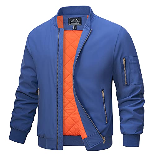 MAGCOMSEN Bomber da uomo foderato, giacca invernale con 4 tasche, giacca da aviatore americano, calda per il tempo libero, giacca per le mezze stagioni, antivento, colletto alto, blu reale, S