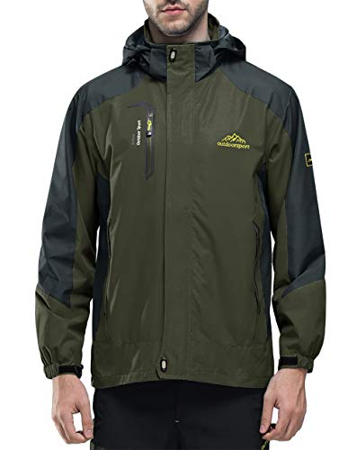 MAGCOMSEN Giacca impermeabile da uomo con cappuccio Softshell Outdoor antivento Mountain Trekking Giacche da lavoro, Verde scuro, L