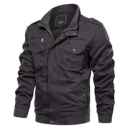 MAGCOMSEN Giacca da uomo leggera, invernale, autunnale, in cotone, stile militare, con tasche con cerniera, Grigio, XXL