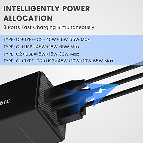 Magcubic Caricatore USB C 65W caricatore da parete USB C 3 porte con Cavo USB-C 1,5m Supporto PD3.0 e QC4.0/3.0, Compatibile con IPhone 12, SE, MacBook, Airpods Pro, Pixel, Galaxy S10 (1 pack black)