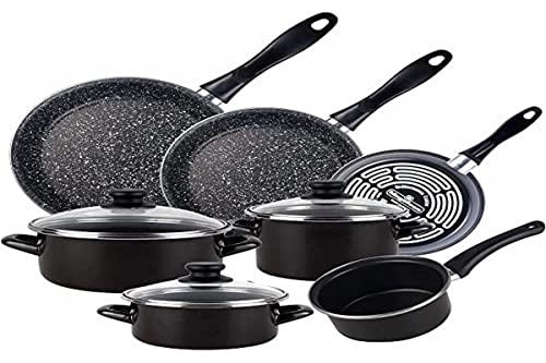 Magefesa Batteria 10 pezzi pentole diametro 16 e diametro 20 coperchi, pentola diametro 16 coperchio e pentolino diametro 14 e 3 padelle diametro 18 diametro 20 e diametro 24 cm, acciaio vetrificato