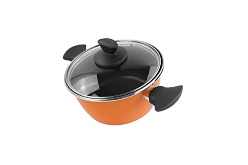 MAGEFESA Casseruola con coperchio 20Ø - Valencia New, Antiaderente doppio strato rinforzato, fondo 100% Full Induction, esterno arancione, 50% risparmio energetico.