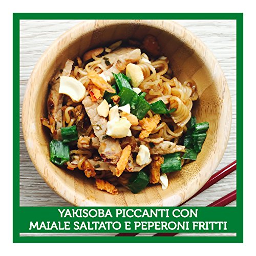 Contiene tre bustine con verdure, spezie e salsa di soia all'interno della confezione
