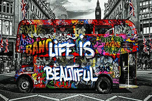 Magic Canvas Art Pop Art Bus B8144 - Stampa artistica da parete a doppio strato, 80 x 60 cm