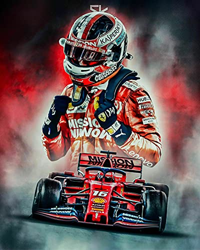 Magic Canvas Art - Stampa artistica su tela, motivo: Ferrari Leclerc (Formula 1), moderna decorazione da parete, 1 pezzo, dimensioni: 100 x 75 cm