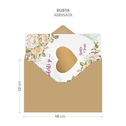 Il pacco include: 1 biglietto, 1 busta bianca, 1 adesivo da grattare color oro