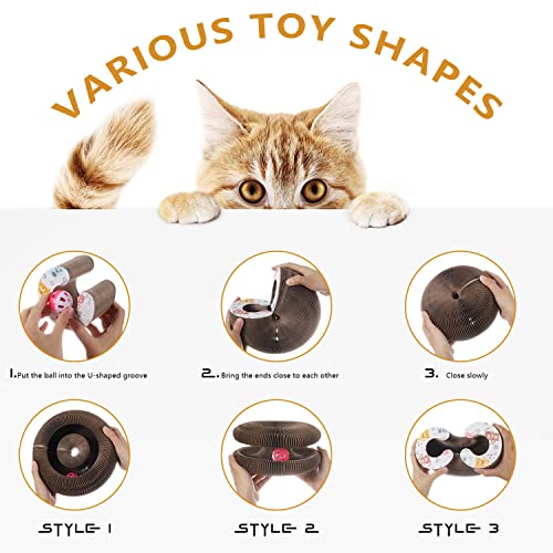 Magic Organ Cat Scratching Board, Tiragraffi per Gatti Interattiva con Palla Giocattolo, Cuccia per Gatti Rotondo Pieghevole, Materiale in Cartone Ondulato Riciclabile, con Erba Gatta