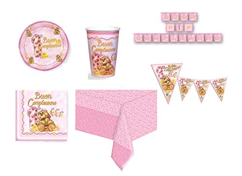Magic Party IRPot - KIT N 17 COORDINATO 1 ANNO ORSETTA NEW ROSA PRIMO COMPLEANNO BAMBINA