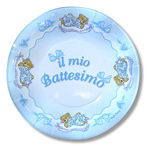 Magic Party PEP04 - Piatto in Carta Battesimo Diametro 21 cm, Confezione da 10 Pezzi, Celeste