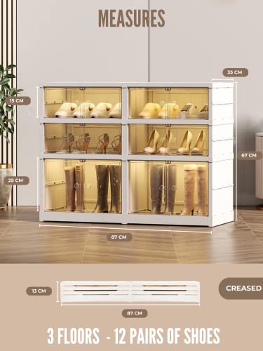 MAGIC SELECT Scarpiera Pieghevole, Scarpiera Armadio, Portascarpe Modular per 12 paia, 3 Livelli. Stoccaggio Traspirante senza Installazione Antipolvere per Scarpe (Bianco)