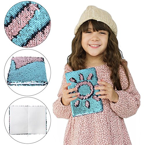 Magic Sequin Journal Reversibile Paillette Ufficio Notebook Notepad Mermaid Diario scolastico per ragazze Adulti Festival Compleanno Regali di San Valentino (Blu/Rosa)