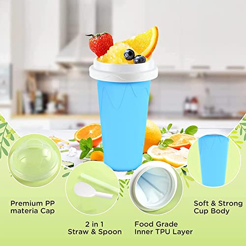 Magic Slushy Maker Squeeze Cup,Slush Cups Slushy Maker Cup,DIY Homemade Smoothie Cup Frozen Drink Cup,2 in 1 Straw And Spoon,Portable Squeeze Ice Cup for Everyone,Blue