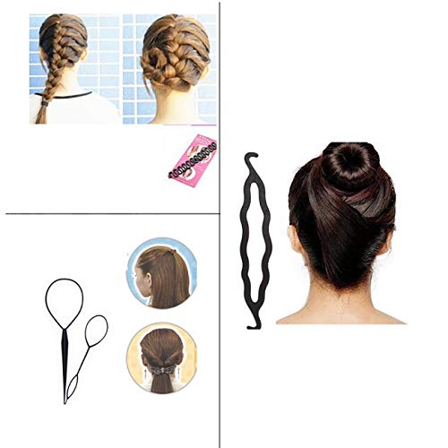 4pcs Magic Hair Stick Styling Tools Set Braiders Hair Pin Comb Bun Roller Maker Hair Braiding Curler Styling Accessories Tool-Black