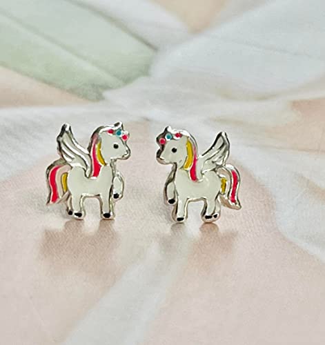 LRP Magical orecchini per bambini a forma di unicorno, in argento Sterling 925
