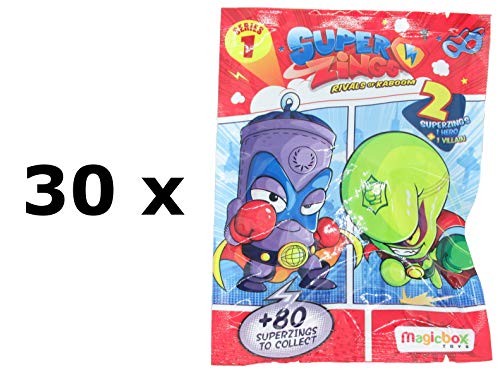 MAGICBOX SUPERZINGS Box Completo 30 Bustine 2 Personaggi Ognuna (1 Eroe + 1 Nemico) 60 Personaggi TOTALI Super Zings Originale Rivals of Kaboom Serie 1