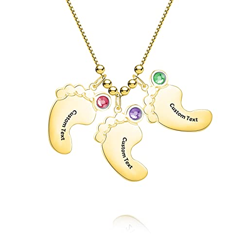 Collana Birthstone per Madri Con 3 birthstones su piedi bambino carino rappresenta l'amore e la famiglia.