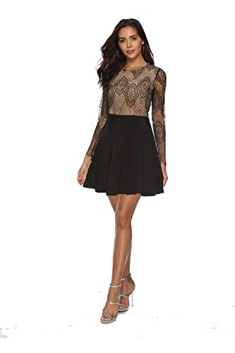 MAGICMK Abito Vintage in Pizzo Floreale, Maniche Lunghe, Colletto da Barca, Ginocchiere. Abito da Sera, Cocktail, Cerimonia Nuziale e Occasione solenne